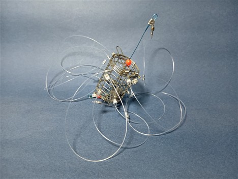 頼んでいたカニ採りの仕掛けが届きました。餌の魚のワタなどを縛り付けるリングが中心にあり、8個のワイヤーの輪が付いていて、カニの足が入ったところを引っ張ると輪が締まる仕掛け。
