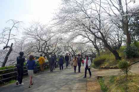 下の池と中の池の間は桜の木も少なく見通しが良いので、遠くの桜を見るのに適した道ともいえる。
