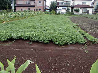 はてさて、どうなりますか、、、 秋が楽しみな、サツマイモ畑です。