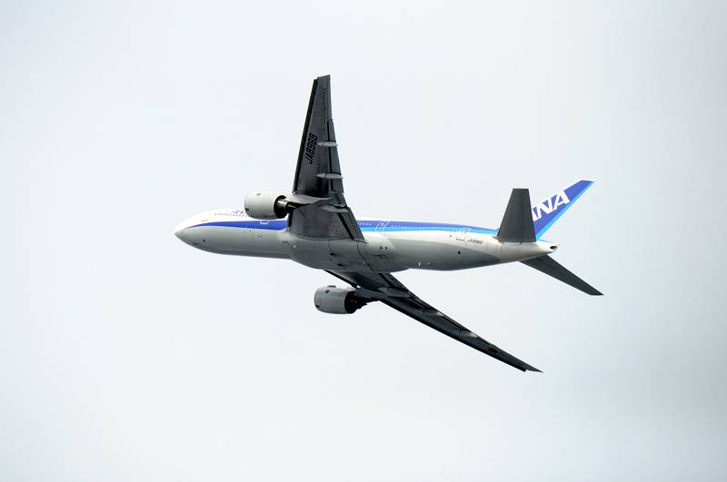 羽田B滑走路から離陸の様子を京浜島つばさ公園から撮影、全日本空輸(ANA)All Nippon Airways ボーイング(Boeing)B777-200 JA8968、撮影:2011年6月