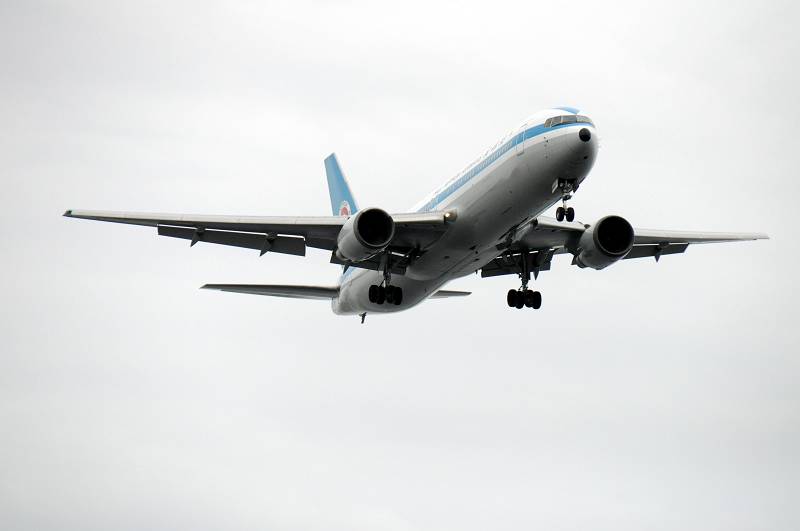 羽田B滑走路に着陸の様子を城南島海浜公園から撮影、全日本空輸(ANA)All Nippon Airways ボーイング(Boeing)B767-300 JA602A モヒカンヴァージョン、撮影:2011年7月