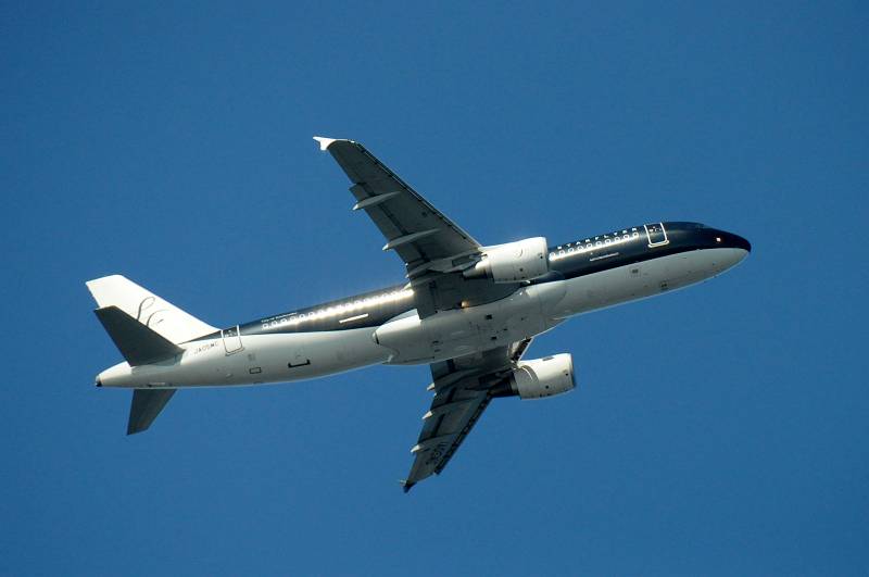 羽田A滑走路から離陸の様子を浮島町公園から撮影、スターフライヤー(SFJ)Star Flyer エアバス(Airbus)A320-200 JA05MC (City of Kitakyusyu)、撮影:2011年7月