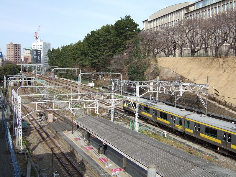 JRの電車、四谷駅前陸橋から総武線と中央線、撮影:2007年2月