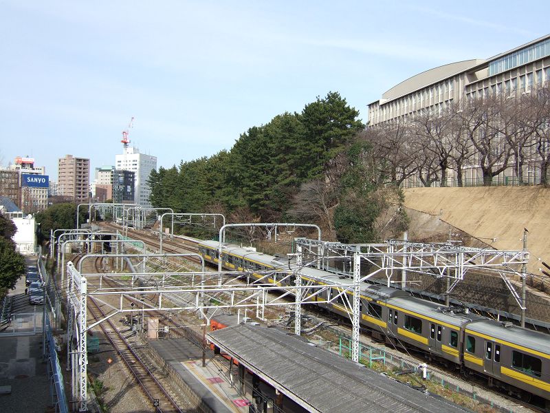 JRの電車、四谷駅前陸橋から総武線と中央線、撮影:2007年2月