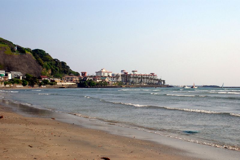 鎌倉の海岸、材木座海岸から逗子マリーナ方面を眺める、撮影:2007年4月