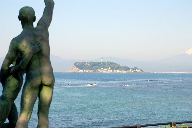鎌倉の海岸、稲村ヶ崎から江の島を望む、撮影:2007年4月