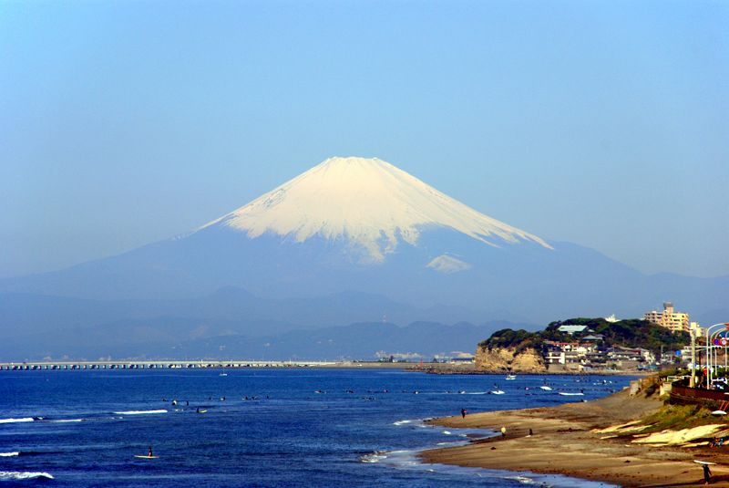 鎌倉の海岸、稲村ヶ崎から富士山を望む、撮影:2007年4月