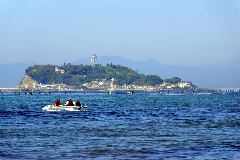 鎌倉の海岸、七里ヶ浜から江の島を望む、撮影:2007年4月