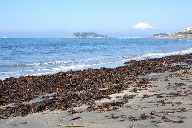 鎌倉の海岸、七里ヶ浜から江の島と富士山を望む、撮影:2007年4月