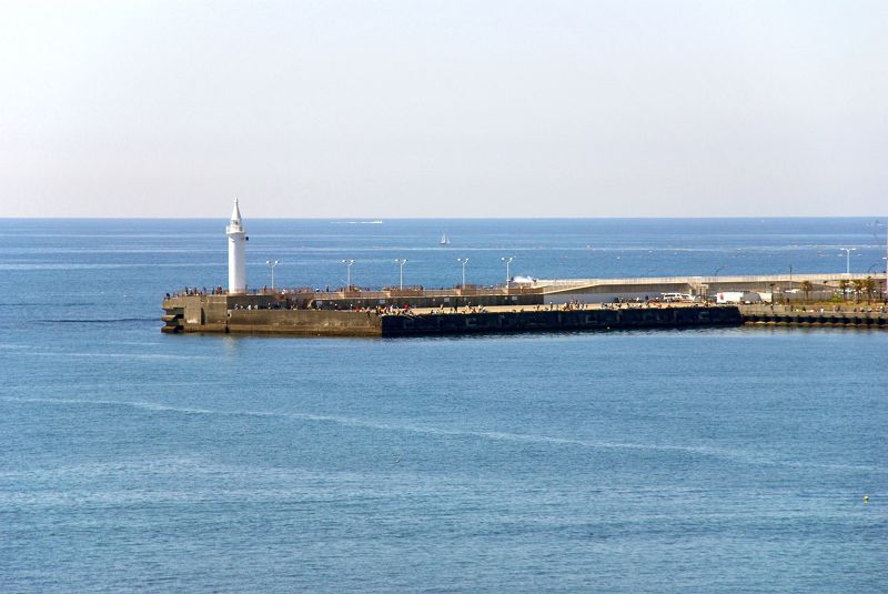 鎌倉の海岸、小動岬(こゆるぎみさき)から江の島白灯台を望む。、撮影:2007年4月