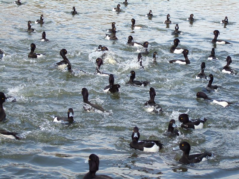 神奈川県立三ッ池公園(横浜市鶴見区)、キンクロハジロの集団 中の池、撮影:2007年2月