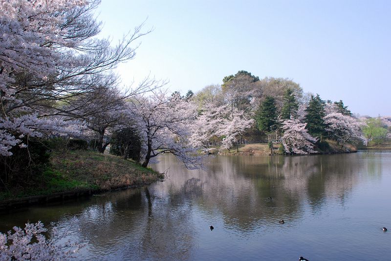 神奈川県立三ッ池公園(横浜市鶴見区)、下の池の桜、撮影:2007年4月