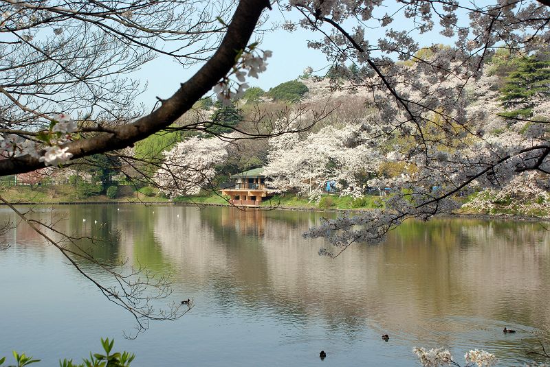 神奈川県立三ッ池公園(横浜市鶴見区)、下の池の桜、撮影:2007年4月