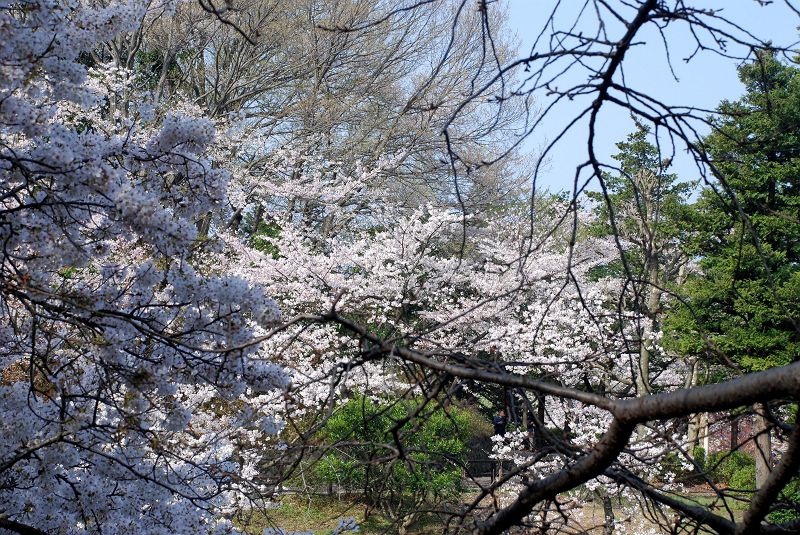 神奈川県立三ッ池公園(横浜市鶴見区)、下の池の桜、撮影:2007年4月