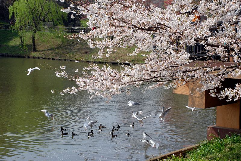 神奈川県立三ッ池公園(横浜市鶴見区)、下の池の桜、撮影:2007年4月