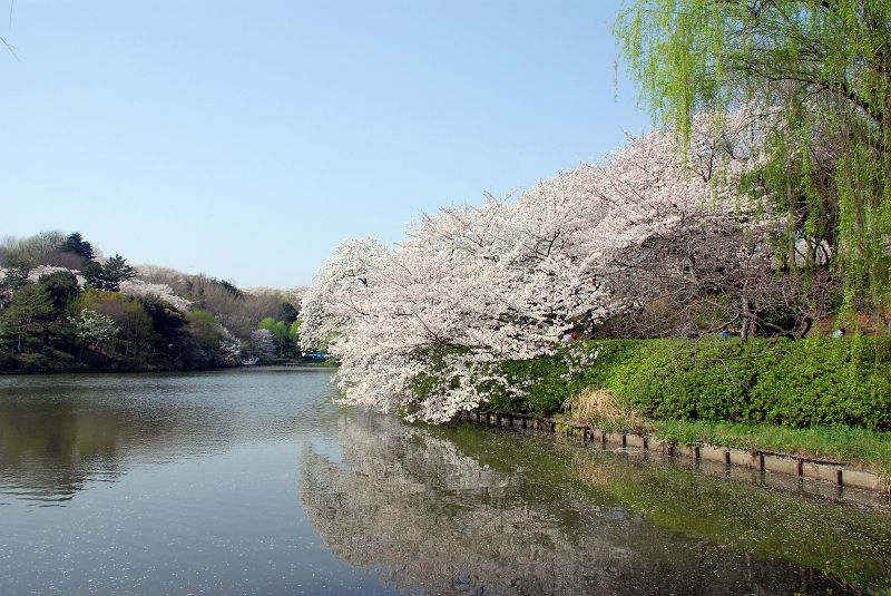 神奈川県立三ッ池公園(横浜市鶴見区)、中の池の桜、撮影:2007年4月
