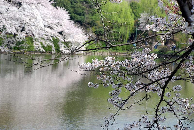 神奈川県立三ッ池公園(横浜市鶴見区)、中の池の桜、撮影:2007年4月