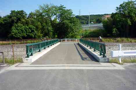 2007年6月完成の郷見橋。新しい橋は作り方がパターン化していて、たぶん予算的にも有利なのだろう。このあたりは川幅もしれているので橋の数がやたら多い。神奈川県に入ると橋の間隔が圧倒的に広がってしまう。