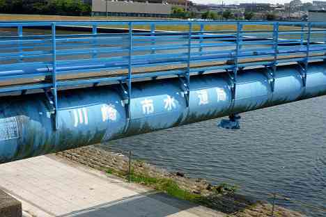 鶴見川橋のすぐ下に水道橋が付いている。